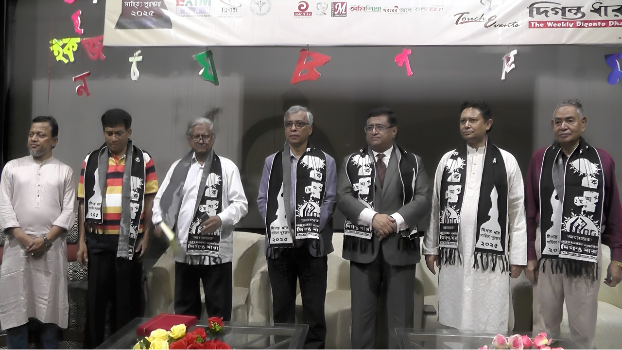 সাপ্তাহিক দিগন্তধারা পত্রিকার আয়োজনে বাংলাদেশ শিশু একাডেমি মিলনায়তনে অনুষ্ঠিত হলো দিগন্তধারা সাহিত্য পুরস্কার ২০২৫ প্রদান, আলোচনা সভা ও মনোজ্ঞ সাংস্কৃতিক অনুষ্ঠান। বিকেল ৪ টায় শুরু হওয়া এই অনুষ্ঠানে প্রধান অতিথি হিসেবে উপস্থিত ছিলেন অধ্যাপক আবুল কাসেম ফজলুল হক, বাংলা একাডেমির সভাপতি।